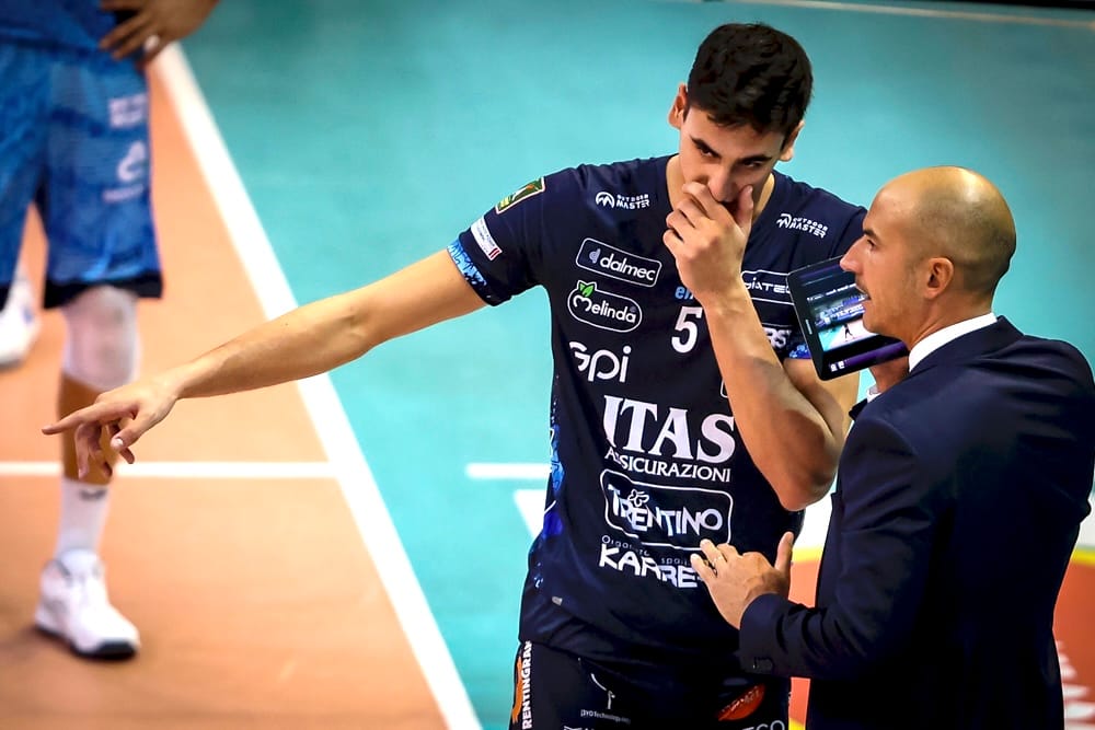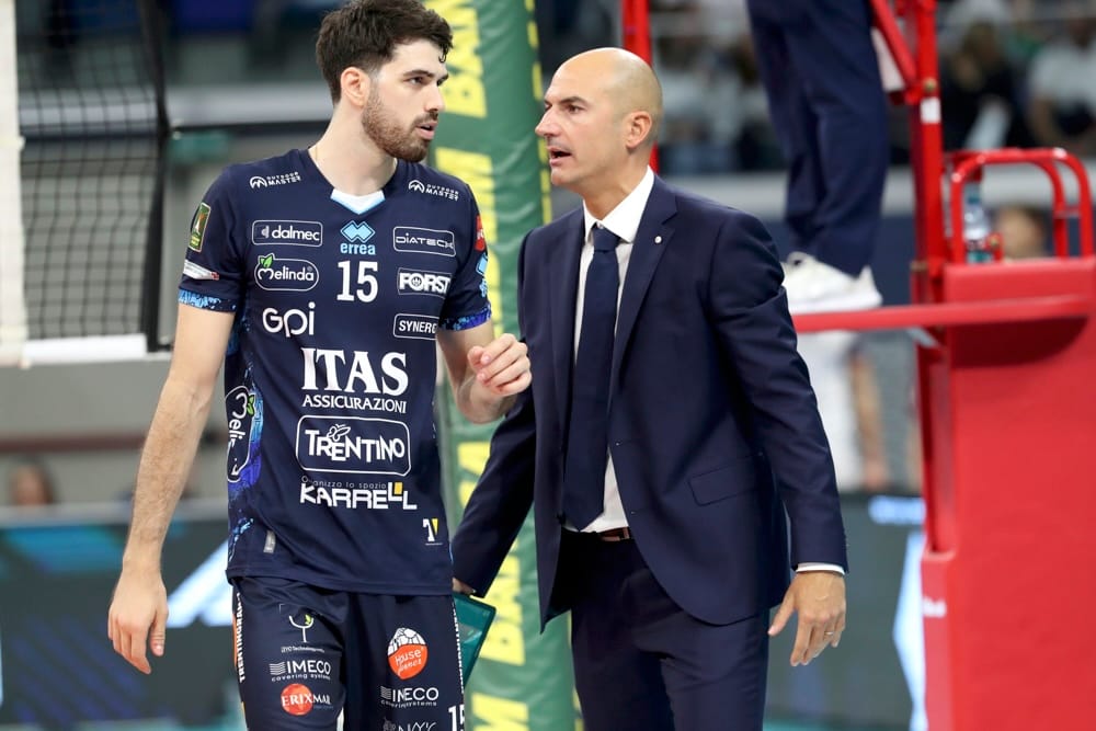 On the other side is Marcelo Méndez, head coach of Itas Trentino and former Argentina national team coach (2018–2025).